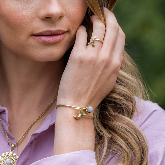 Tanvi Collection Bangle Bracelet - Gold with Moonstone
