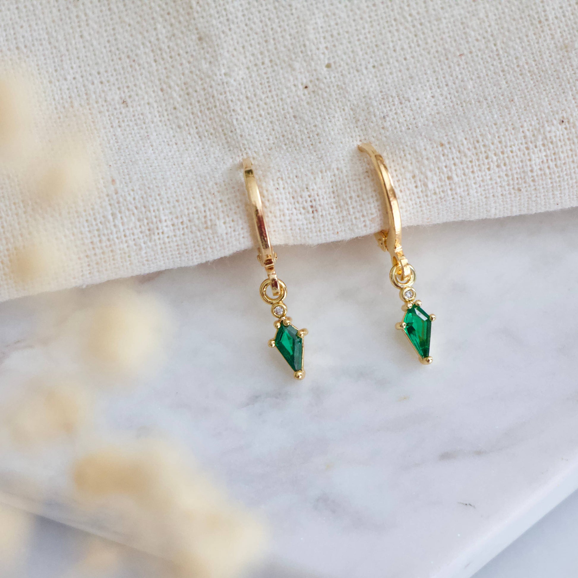 Emerald Green Huggie Earrings